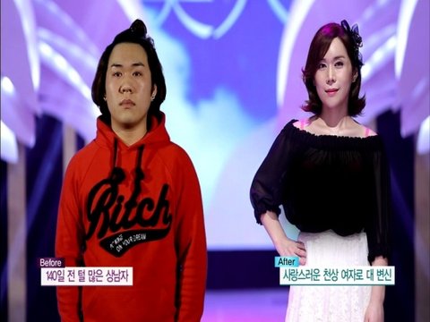 변신된 자신의 모습을 처음으로 보고 주저 앉는 김미영씨 !!!