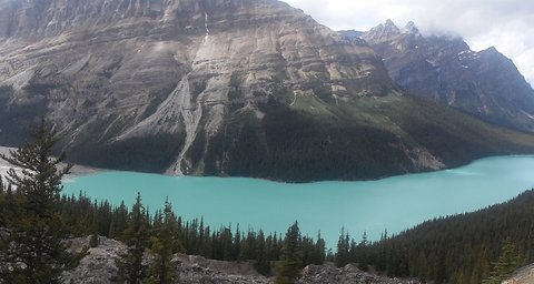 곤돌라를 타고 산 꼭대기로 올라가면 산 사이에 있는 레이크루이스를 볼 수 있는데,