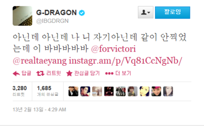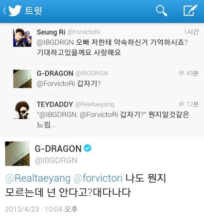 나는 6년째 빅뱅팬인 사람임 어느날 지디 승리 트위터 대화 보는데ㅋㅋㅋㅋㅋㅋㅋㅋㅋㅋㅋㅋㅋㅋㅋㅋㅋㅋㅋㅋㅋㅋㅋ얘네 왜이렇게 귀엽게 놀아요ㅋㅋㅋㅋㅋㅋ나만 보기 아까우니 몇개 올려보도록 하겠음