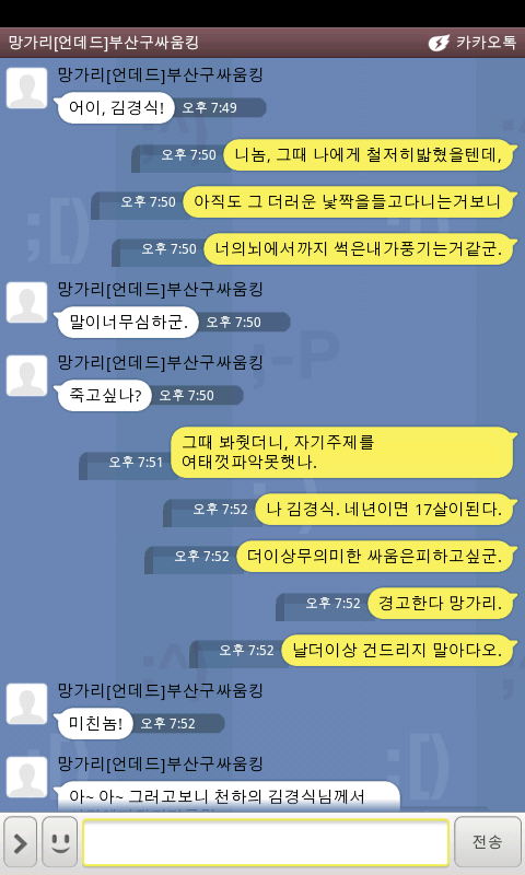 전 일진을탈퇴한 중딩입니다. 그런데 일진들이 카톡으로협박을