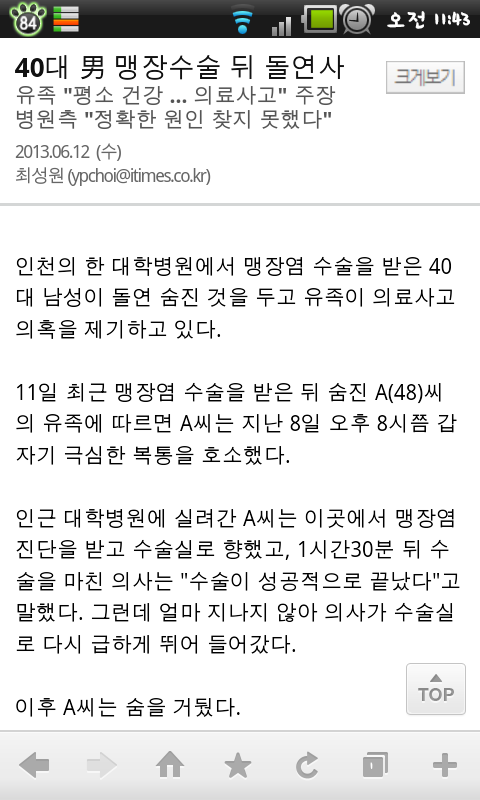 네... 저희 아빠 억울하게 맹장염 수술하다 돌아가셨어요...