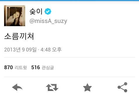 요즘 수지 왕따설 도니깐 지아가 수지랑 예전에 같이찍은 사진올림 근데 수지가 저격글 비슷하게 트위터올림 "소름끼쳐" 무슨의미일까
