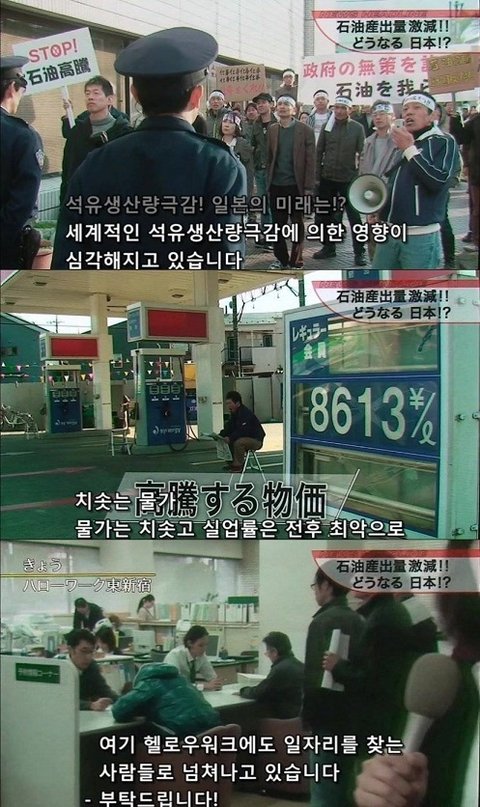 오늘의 이야기는 세계적인 석유생산 극감으로인한 경제적 타격으로 많은 사람들이 일자리를 잃고 헬로우워크(고용센터인듯)로 사람들이 몰리는 그런 암울한 상황으로 시작함.