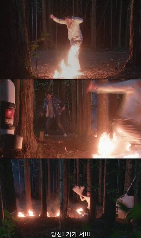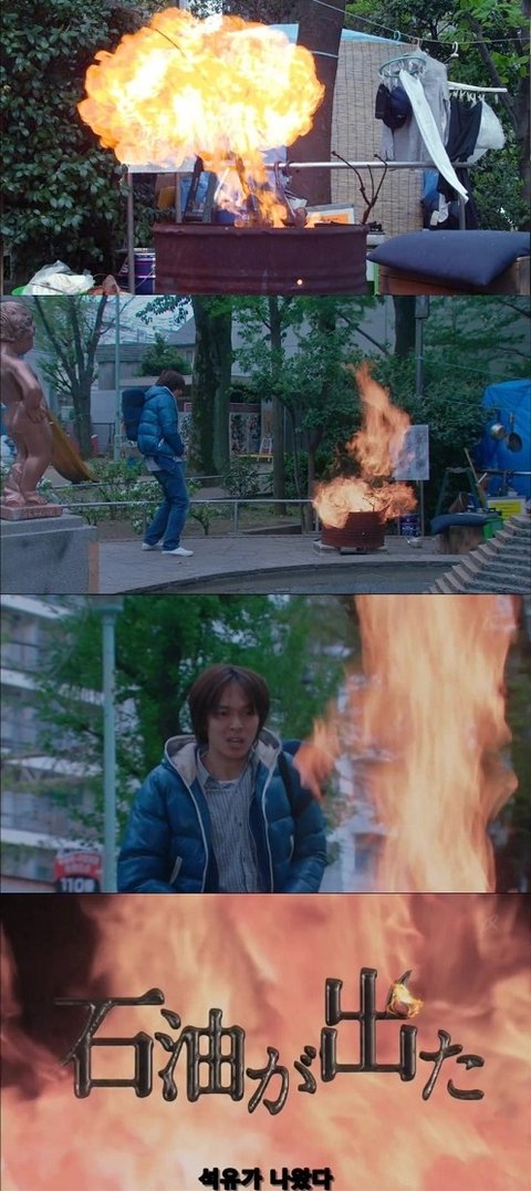 남주가 방뇨하던 드럼통에서 갑자기 불이붙음 ㅋㅋㅋㅋ 그와동시에 오늘의 타이틀 등장.