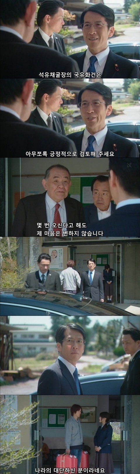 그렇게 남주가 석유생산?에 힘을 다하던 어느날 나라의 고위급공무원?으로 보이는 한남자가 마을을 찾아옴. 아마 미나이 마을에서 석유가 난다는 소식을 듣고 찾아온듯하지만, 촌장은 부정적인 태도로 일관하는듯함.