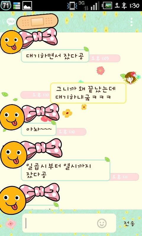 오늘 아침에 모닝콜하면서 뭐라했더니