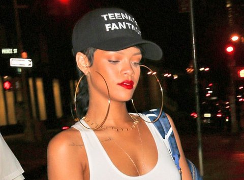 자기 얼굴보다 크고 자기 목 길이보다 지름 긴 귀걸이를 한 리한나