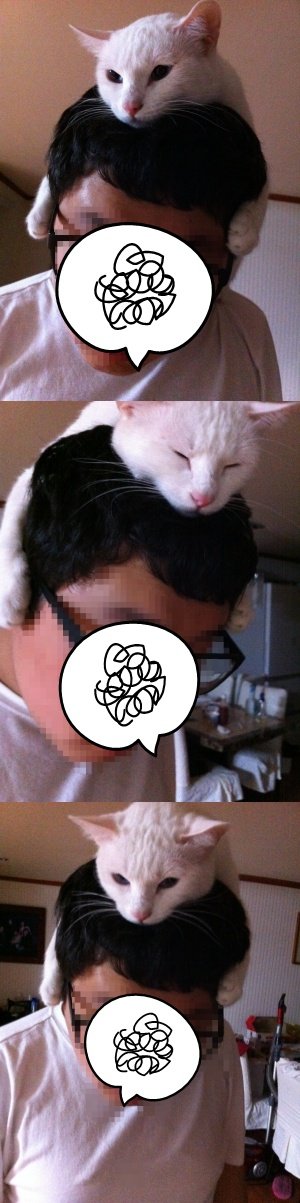 살며시 남집사 머리 위로 올라가서 두손 아니 두 발을 귀 위에 올리고 자리를 잡으면 됨