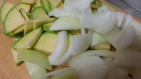 양파와 애호박을 숭덩숭덩 잘라 줍니다