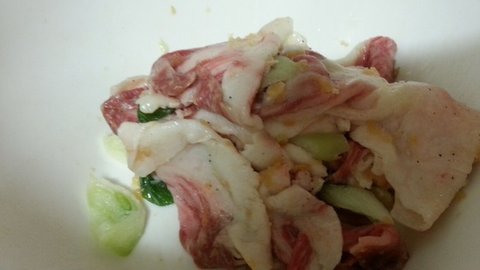갈갈이 찢겨진 고기 중에 겨우 하나 건져 양파와 먹었습니다