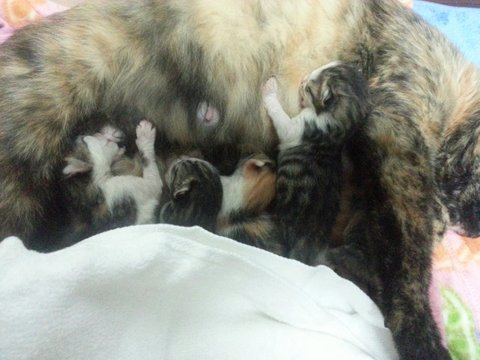 혹시나 여섯마리나 되는 아깽이들 젖이 모자랄수도 있지 않을까 싶어서