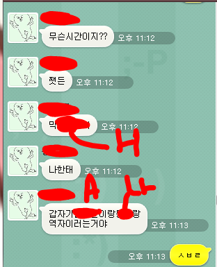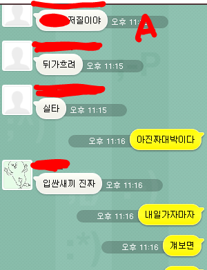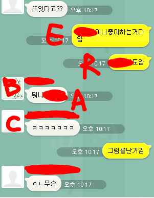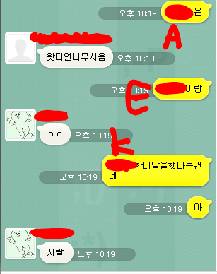 마지막으로 저랑B,C가 한카톡일부를 올리고가겠음ㅋㅋ