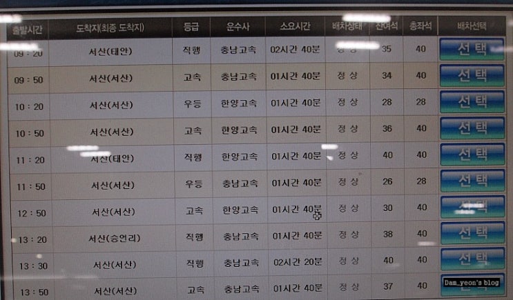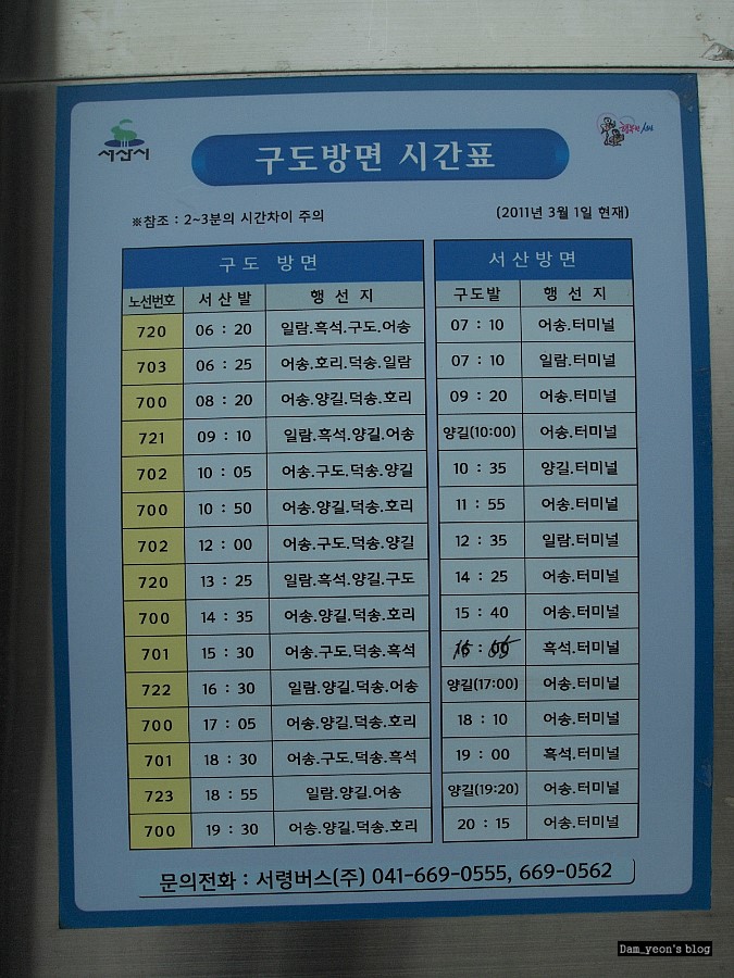 구도항에서 서산터미널로 돌아가는 버스 시간표