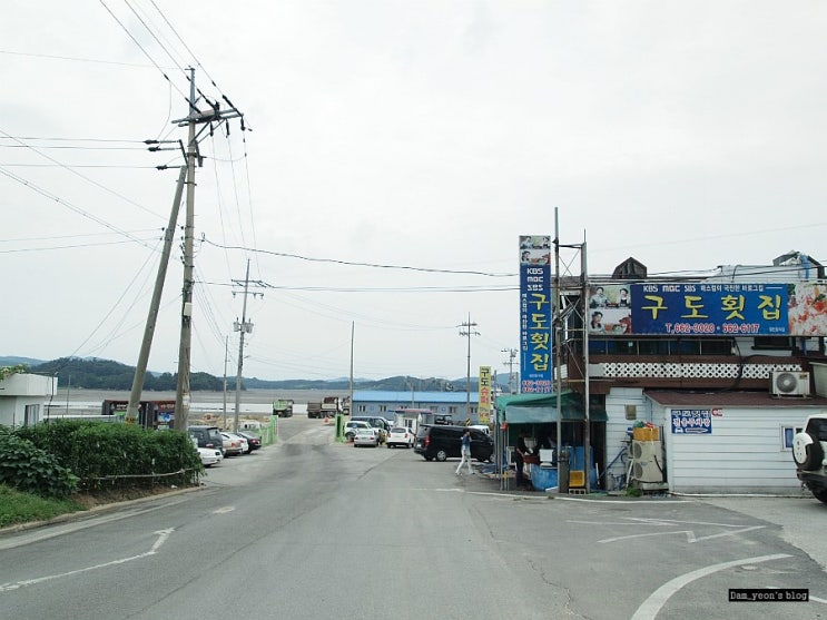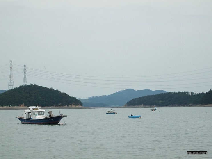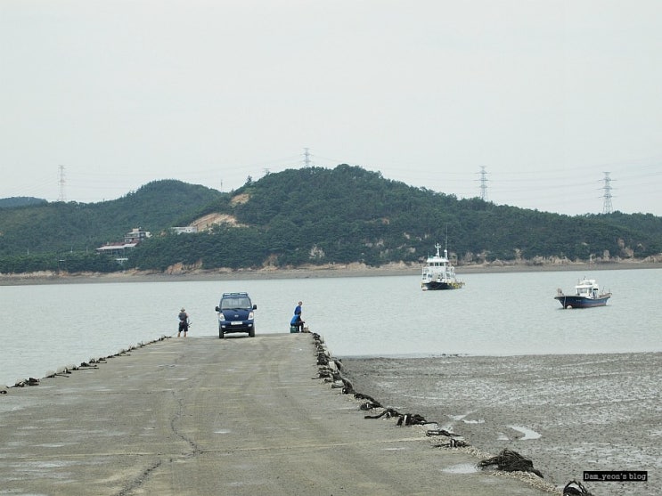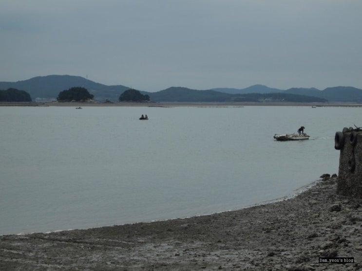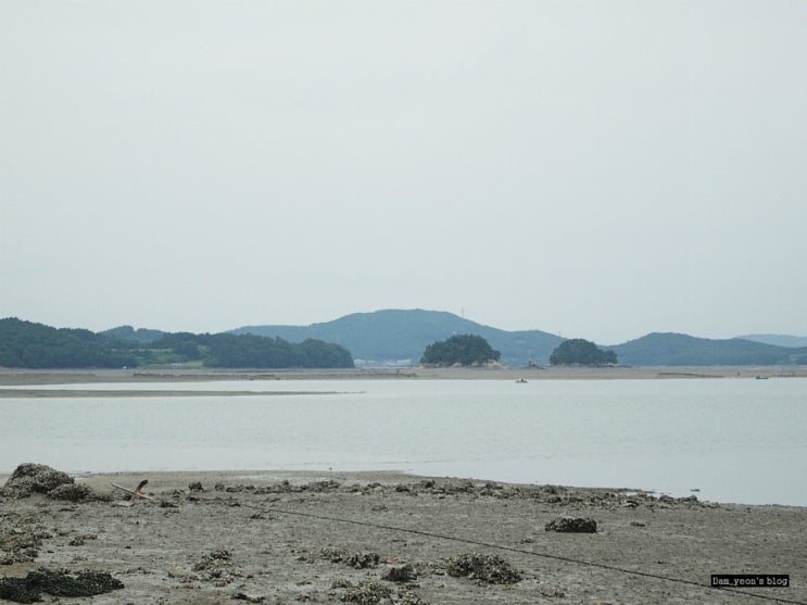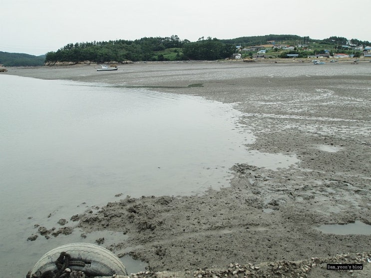 버스에서 내리자마자. 멀리 보이는 갯벌
