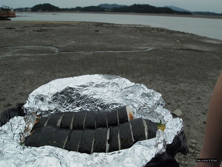 터미널에서 사온 김밥 두줄을 바다를 보며 먹었다