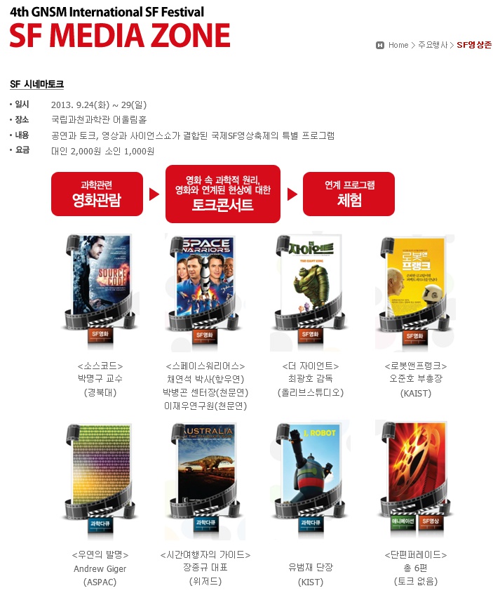 개인적으로 가장 기대되는 프로그램이자 핵심인 'SF시네마토크'
