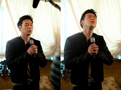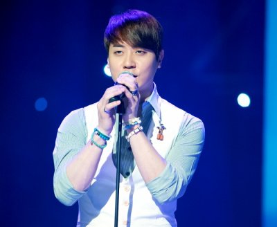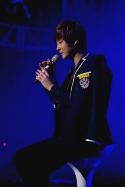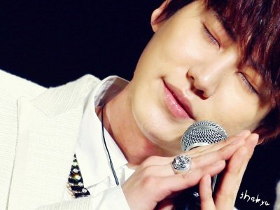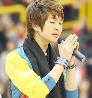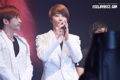 두손모아 조심스레 마이크 잡고있는 아이돌 모습