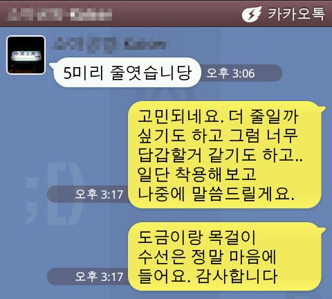 전문가시니까 그 정도만 줄이면 내가 원하는 길이 나오나보다 싶었죠.