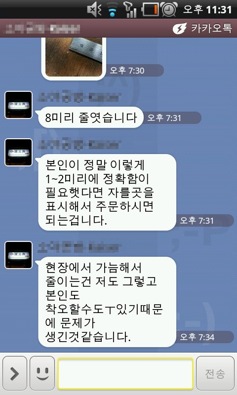 11일날 배송이 와서 제품 풀러보고 카톡한 것만 캡쳐 떴어요.