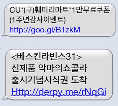 ‘공짜’, ‘할인’, ‘무료’ 등 사람들을 혹하게 하는 단어를 넣어 URL 클릭을 유도합니다.