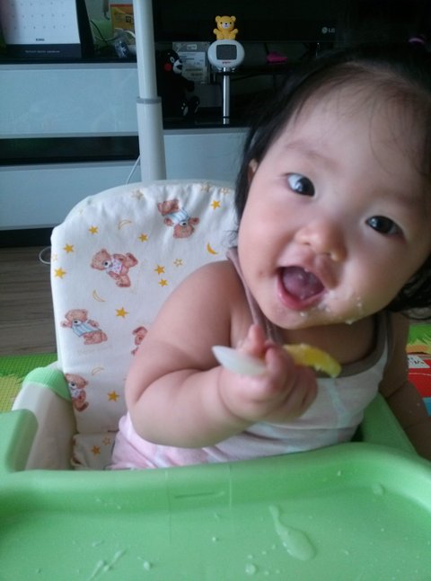 청순한척 앉아있지만 실은 이유식 먹일땐 전쟁이에요, 이유식먹은 손으로 눈비비고 머리만지고 잘 먹지도않고ㅠㅠ
