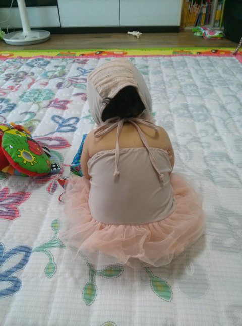 원래는 예쁜 베이비핑크색 수영복이었는데 제가 세탁을 잘못해서 검은물이 들었어요ㅠ마치 10년은 더 입은 수영복이 되버렸어요,딸~이건 엄마가 빈티지스럽게 만들기 위해서 일부러 그런거야,요새 빈티지가 유행..........은 개뿔,이건 진짜 미안하다ㅎ