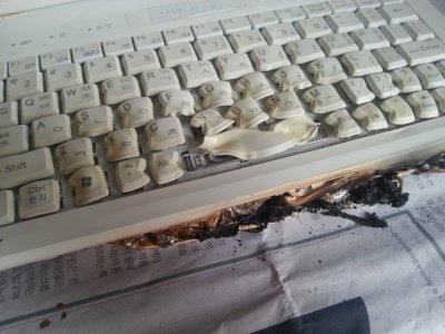 키보드가 녹았고, 화면쪽은 녹거나 하지 않았지만 조금 휘긴 했습니다.