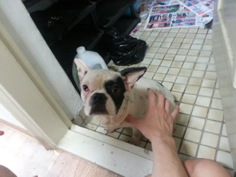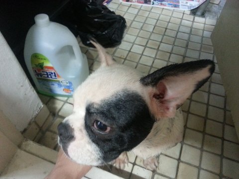 오늘아침 일곱시쯤 의정부역에서 강아지를 발견했습니다.
