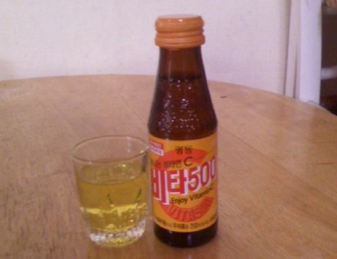 피로회복을 위해 마시는데요 비타500 과 소주랑 섞어 착한 비타주라고 하는