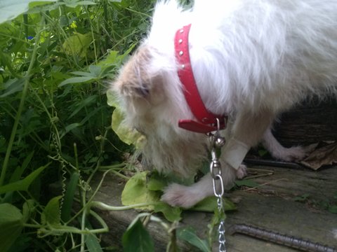 산책하면서 풀숲가에서 쁜이가 풀을 뜯어 먹더군요.