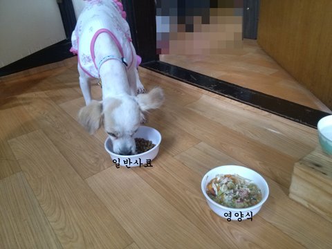 코코는 한그릇 뚝딱하는데 쁜이는 한번도 못먹어봐서인지 일반 사료만 먹더군요.