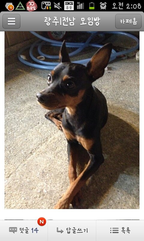 미니핀에 꼬리 잘려있고 중성화 안된 남아입니다
