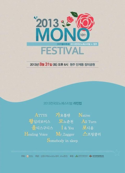 모노는 ‘모두 모여 노래하자’의 준말로 2002년 결성돼 매년 지역의 대표도시에서 축제를 벌이고있다고해요.