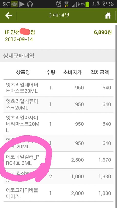 영수증 버려달라고해서ㅠㅠ 앱에 들어가서 구매기록 보니까 있어서 같이 올려요ㅋ