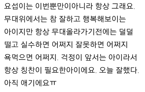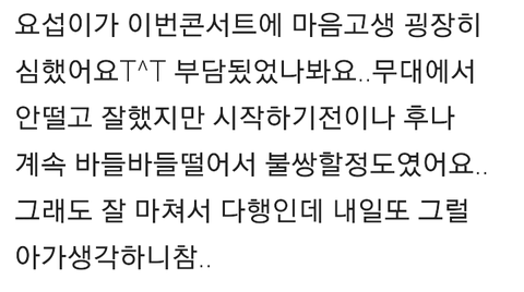 오늘공연다녀오신팬분이쓰신건데 마음고생심했겠죠..