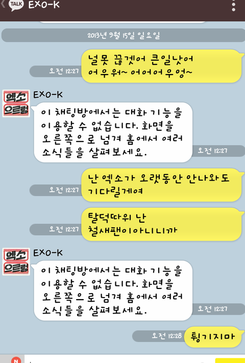 exo-k 랑 카톡함 ㅠㅠㅠ