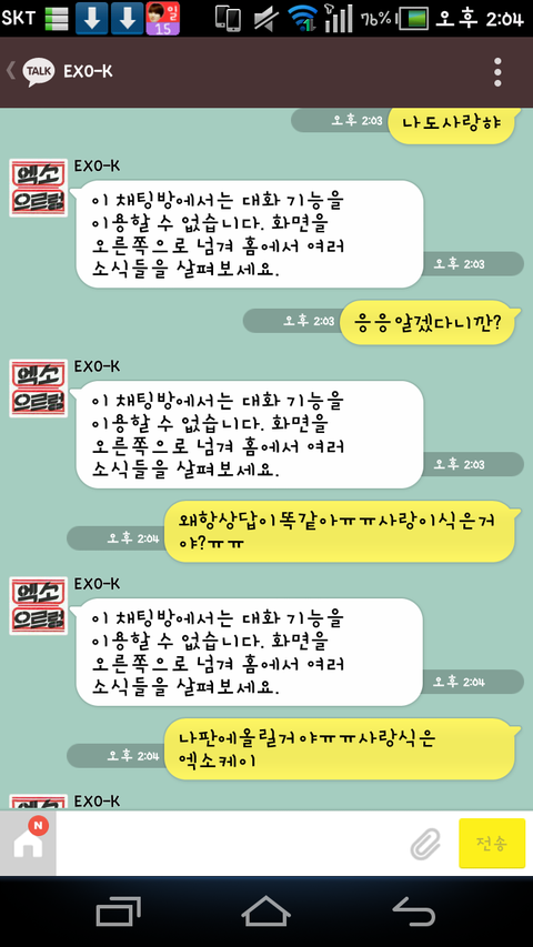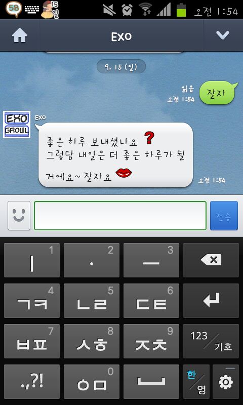 exo-k랑 카톡햇는데 칼답 ㅎ