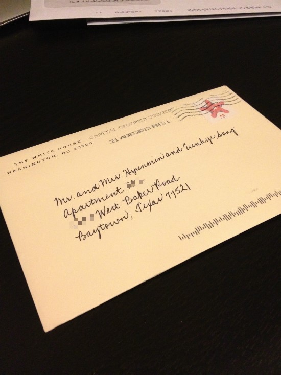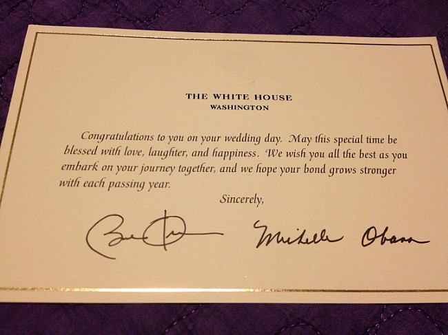 그렇다!!!버락 오바마와 미쉘 오바마에게서 온 결혼식 축하 카드 였따아아앙~~