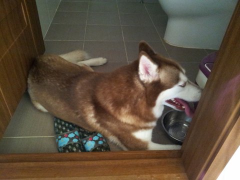 산책 다녀 와서 물먹는 곳 앞에서 저러고 계속 있었던 것 같네요..