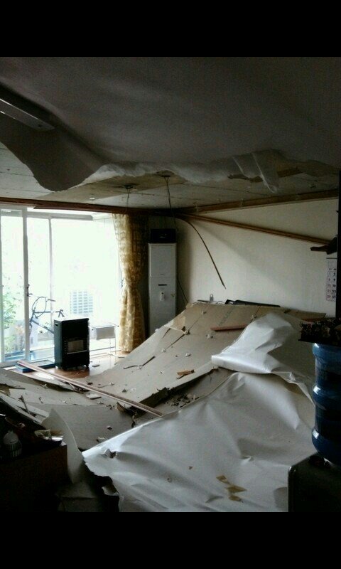 밤에 삼촌댁 천장이 무너졌다네요.