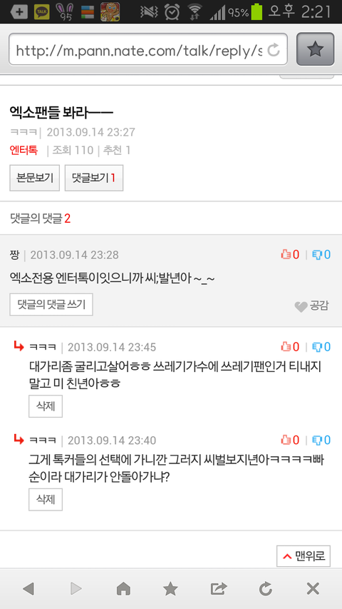 엑소글 작작올리랬더니 적반하장으로 욕 ^^