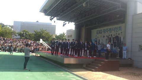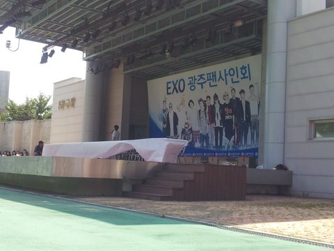 저는 엑소 으르렁 팬구호를 모르고왓다가 외우고왓어요:-)으르렁다음으로 xoxo부터 트랙순으로 노래가 쭉 나오더라고요ㅋㅋㅋ그래서 저는 열심히 불럿죠ㅋㅋㅋㅋㄱㅋ오늘 으르렁만 몇십번들은거같아요ㅋㅋㅋㅋㅋㅋㅋ열심히 부르고있다가 팬싸가 1시30분에시작한다고 하고 앞에분들다앉아달라는 공지를받고 또열심히 노래를불렀죠...ㅋㅋㅋㅋㅋㅋㅋㅋㅋㅋㅋㅋㅋㅋㅋ이곳은 팬들의 열정을 더해서인가 너무더웟어요...저는 다리 다 타고 얼굴이..지금꼴이 꼴이아니에요....벤치에 앉아잇던분이 앞에앉아잇던 저와친구를포함해서 앞에분들께 '너희그렇게앉아서흑인되라!!'라는 말이 왜이렇게 와닿죠....망햇네요...그러고잇다가,.......엑소가거의올시간이 다되니까 저는 손이떨리면서 폰카메라를 재정비하고 떨리는쿠크심장을 다듬고잇는데 건너편에서 소리를지르길래 왓나?!?!?!?라는생각을 햇지만 아직오지않앗어요:-)이렇게 심장은 더 쪼그라들죠...1시30분이되니 초록색과 검은색이 섞여잇는 큰 대형버스가 들어오더라고요...하하왓구나오빠들이!!!!!!!!!!!!!!!!!!!!!!!그버스는 엑소버스가 맞았어요:-)하하 1시40분에 오빠들이 무대올라오는순간 이장소는 전쟁이난거처럼!!소리가어마어마햇죠...저도 소리를질럿구요...핳...저는 들어오는동시에 영상을찍어댓죠....we are one 안녕하세요 엑소입니다라고 하는 소리가 영상에서 들리지않아요...하...저는 오빠들이 들어오는동시에 한손은 카메라 한손에는 우현오빠...하트아실까요...저는 우현오빠께 기도를 하며 "오빠 저오늘 하루만 오빠 쪼꼬미 하트 오늘딱 하루만쓸께요 사랑해요♥미안해요오빠ㅠㅠ"라는 말을가슴에 새긴체 또다른 한손에는 쪼꼬미하트를...맞아요..저는...인슾겸..엓팬이에요...어쩌다니 투잡을...하하...저는브입장동시에 그러고잇는데 백현이오빠가ㅠㅠㅠㅠ제하트를 보시고는 자한테 그하트를 한번 날리고서는...반대쪽에ㅠㅠㅠㅠㅠ하미치겠네요...오빠가..제하트를보고 따라하셧을까요ㅠㅠㅠㅠㅠㅠㅠㅠㅠㅠㅠㅠㅠㅠㅠ백현짱ㅠㅠㅠ사랑해요ㅠㅠㅠㅠㅠㅠㅠㅠㅠㅠㅠㅠㅠ저희쪽에서는 타오오빠랑백현오빠가 제일잘 보이더라고요ㅠㅠㅠ하...ㅠㅠㅠㅠ저는 찬열오빠아아아아소리를지르는데 ....찬열오빠는 저희쪽을 봐주시지않으엿어요....백현오빠를 부르니까 오빠가 손을흔들어주면서 오늘 대박이엇던거같아요ㅠㅠ타오오빠는 방송에서 다크서클 말이나오는데 실제로봣을때는 다크써클은 그렇게많지않아요ㅠㅠㅠㅠ잘생기고귀여워요ㅠㅠㅠㅠㅠ싸인을하시다가 백현오빠가 저희쪽을 많이 봐주신거같아요ㅠㅠㅠㅠ타오는 팬이주신 털동물발모양 장갑을끼고 싸인을하는데 진심귀여움 빵빵터짐ㅠㅠㅠㅠㅠㅠ싸인을하시다가 레이오빠가 일어나셔서 양쪽다 손흔들어주고 힐링레이ㅠㅠㅠ나를힐링해줘서고마워요ㅠㅠ종대오빠진짜 웃는거 녹아ㅠㅠㅠ민석이오빠는 더우셧나 위에 교복자켓을..벗으셧어요ㅠㅠ(참고고 이번팬싸 의상은 위에 남색 자켓 과 자주색 바지 교복!!!!!!!!)민석오빠웃는모습 정말 달콤....,준면오빠는하얗고...경수오빠웃는모습 진짜사랑스럽고 종인오빠는 그렇게만니 꺼매 보이지는않고 머리색 보라색ㅠㅠ찬열오빠ㅠㅠ아까엑소가오시전에 어떤팬분이 오늘 찬열오빠 안경쓰고온다고 그러셧는데 그분말이맞앗어요 검은색뿔태안경ㅠㅠ모자는 꺼꾸로 돌려쓰고ㅠㅜ하대박ㅠㅠ짱ㅠㅠㅠㅠ루한은브라운으로염색ㅠㅠㅠㅠㅠ세훈은머리가 탈색을하셧나 하햇어요ㅠㅠㅠㅠㅠㅠ오늘전부다 컨디션이좋았나봐요 잘웃어줫어요ㅠㅠ싸인을다한후 인사를 또하고 저희쪽에서와서 인사를하는데하...와우...저희쪽으로 왓을때 앉아잇던분들이 다일어나셔서 제친구가 깔리면서 울타리가 넘어지려고하니까...수호오빠가....하...제친구를 가리키면서 경호원분께 저기 좋게 다시 제지해달라고. ..그래서 준멘은 제친구를 수호하시고 가셧답니다하하핳저는 그때 소리지르고...잇엇는데 찬열오빠가 저랑눈이맞으치시고는 웃으셧어요ㅠㅠㅠㅠㅠㅠ오늘저는잠다잣어요ㅠㅠ그러고나서 한명씩돌아가면서 인사와인터뷰를하는데 엠씨는 역시 수나운서가bb인사를 멤버별 다하는데 다들하는말에 다 감사한다사랑한다ㅠㅠㅠ오빠들ㅠㅠㅠㅠ그리고인터뷰를하는데ㅠㅠ수나운서가 타오한테 스플래쉬이야기를 하는거에요ㅠㅠ저는 이때 타오오빠울지마 라고 큰소리로 소리지르니까 타오오빠가ㅠㅠㅠ저희쪽을보고는 웃어줫어요ㅠㅠㅠㅠㅠㅠ오빠울지마요ㅠㅠㅠ그러나우는모습도 긔엽다는 불편한진시류ㅠㅠㅠㅠㅠㅠㅠㅠ제가찍은영상은..... 오빠들목소리가안들려요....팬들이소리지르는소리가...핳....갠찬아요...하핳......,그리고 타오가 광주좋다고 또온다고 그랬어요ㅠㅠㅠㅠㅠㅠ제발와요오뺘ㅠㅠㅠㅠㅠㅠ마지막으로 we are one 을외치고...오빠들은 하트를 날리시며 버스를 타러가셧요...저는 그마지막모습을 보기위해 달려갔죠...그러나 그버스창문은 버스안이안보이는 창문...썬팅이강한가봐요...핳....그래도저는 열심히 손을 흔들엇ㅇㅓ요... 오빠들이 봣으면하는 바램...ㄸㄹㄹ★☆저는 팬싸장소에서 남색자동우산을 잃어버리고 시내를 가서 네이처리