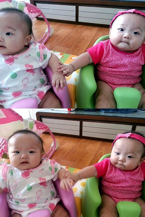 어느날 부턴가 둘째가 도리도리를 하면 첫째가 재미나게 웃길래 동영상으로 남김.