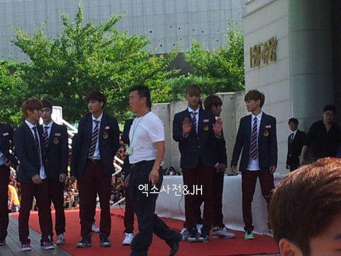 제가 늦게 가서 사선으로 보이는곳에 앉았는데요 엑소가 팬싸시작하고 조금 여유로울 쯤에 백현이 제가 있는쪽 보면서 팬서비스를 해주고있었죠 막 손도흔들어주고 웃어주고 가끔눈마주치는것 같기도하고 설레고 그러던중 제가 폰카로찍는걸 그만두고 보고있는데 백현이 제쪽을보더라구요 제가 쫌 서잇엇는데 앉은위치랑 제높이가 같아서 아이컨텍만 근데 한 20초하고 계속 그냥 쳐다만보니까 혹시나해서 손흔들었는데 그순간 웃으면서 손흔들어 주더라구요ㅠㅠ♥♥제 착각일진 모르겟지만 상황이 딱딱들어맞다보니...ㅎ암튼 짱이엇어요♥(+판보니까 백현 저있는쪽하고 아이컨텍 짱이었다고 하네요ㅎㅎ 그럼 저는 진짜 운좋게 걸린거네요ㅠㅠ)
