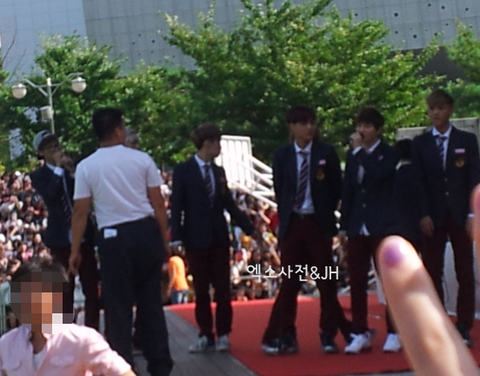 두번째, 앞에앉은 팬분들이 일어나면 뒤에서 앉으라고 상황정리해주고 엑소 사생때문에 대포들고 찍을려고 하는사람들 막아주고(잘한거겟죠..?)