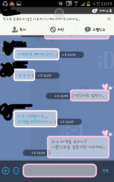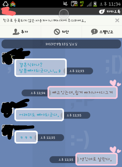 카톡 친구랑 대화 내용이구요. 제 말 끝으로 연락 없네요ㅋ