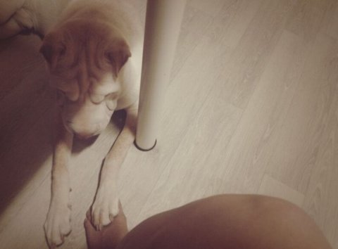 제다리에 앞발두개를 턱 올려놓고는 뽀뽀를 세방이나 날려주고 가셨어요 흐흐