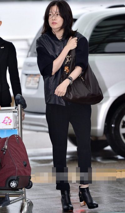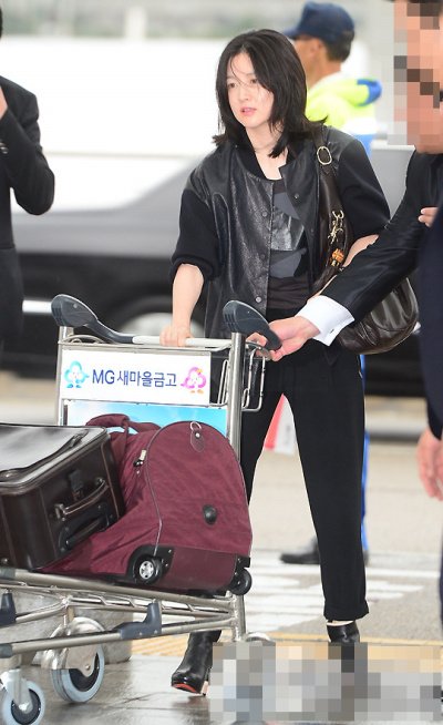 이게 어떻게 된 일인지 완전 산발한 머리로 공항에 도착한 이영애