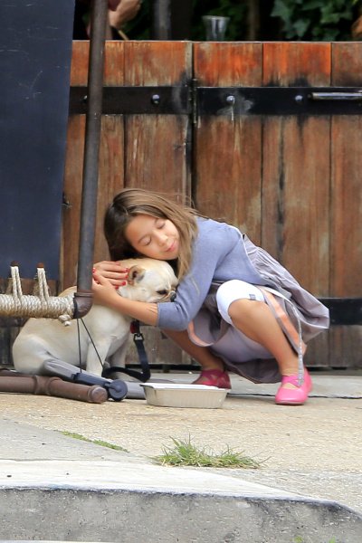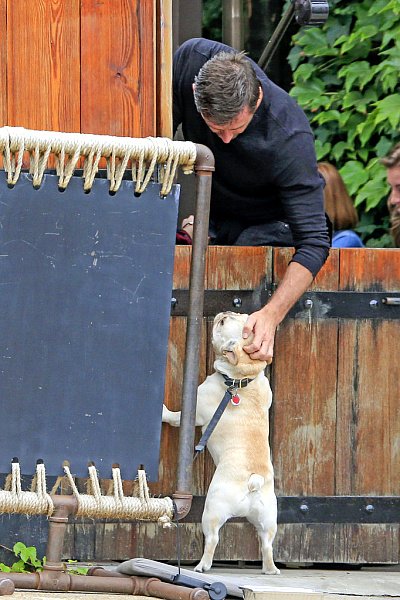 반려견 까지 데리고 우르르 외식하러 나온 휴잭맨네 가족