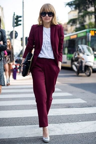 버건디 컬러는 그 자체로도 충분히 매력적이기 때문에 코디할 때 의상의 컬러나 액세서리를 굳이 화려하게 하지 않아도 된다.